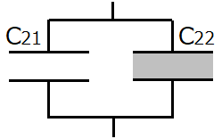 $\displaystyle C_{21}={ε_0}\frac{\displaystyle\frac{l^2}{2}}{d} $